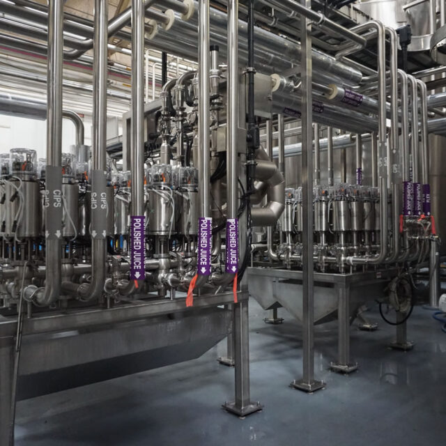TMPC provided a complete process and packaging solution for the expansion of a juice facility on California Central Coast. This 100,000 GPD-capacity plant includes pressing, filtration, and bottling with both hot fill and cold fill capability. TMPC delivered turnkey design, automation, utilities, and installation, ensuring rapid deployment and operational efficiency. The facility stands as a testament to scalable, integrated process engineering.